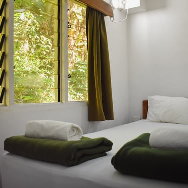 A peaceful retreat ideal for solo travelers or couples. Features a queen bed, air conditioning, smart television (BYO connection device), bar fridge, and dining space for two.